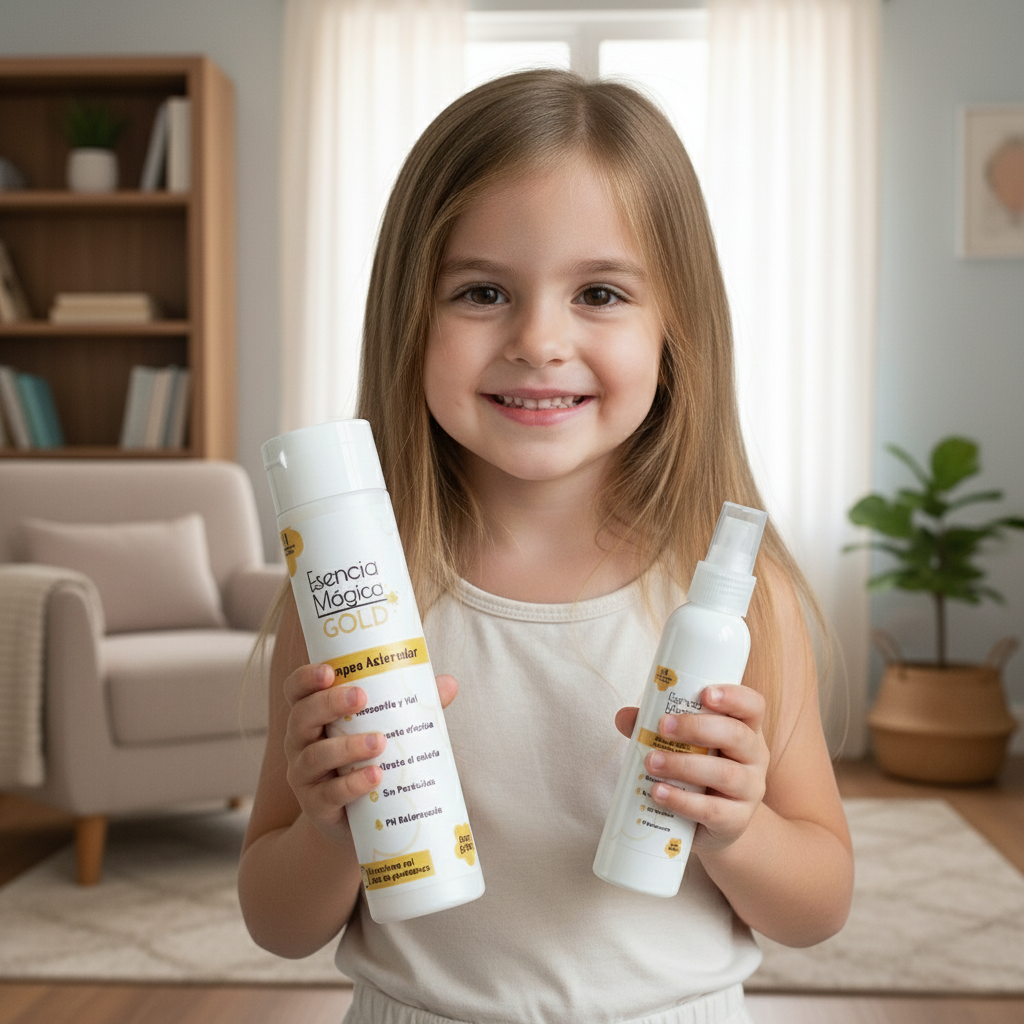 Esencia Mágica GOLD está diseñados para mantener y realzar ese tono claro y brillante, protegiendo la salud capilar de tu hijo y asegurando que su cabello luzca siempre radiante y lleno de vida.